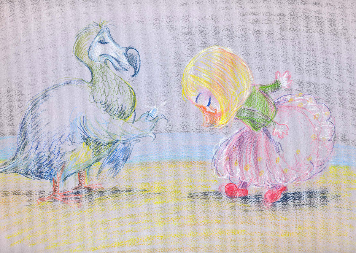 Dopo il ritorno di Pinocchio illustrai Alice nel paese delle meraviglie, sempre nel lontano 1995. Anche qui spaziavo dalla china ai pastelli ad olio, matite, gessetti, collage e acquarello… un bel casino.